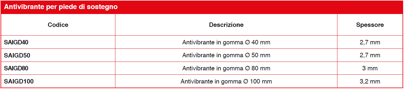 Complemento ai piedini, per smorzamento delle vibrazioni