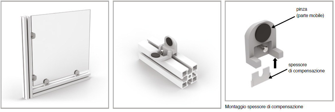 Blocchetto per fissaggio pannelli con spessori di compensazione