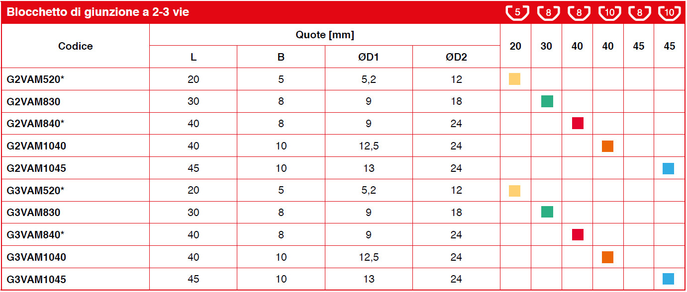 | Serie | Serie 20 cava 5, Serie 30 cava 8, Serie 40 cava 10, Serie 40 cava 8, Serie 45 cava 10 |