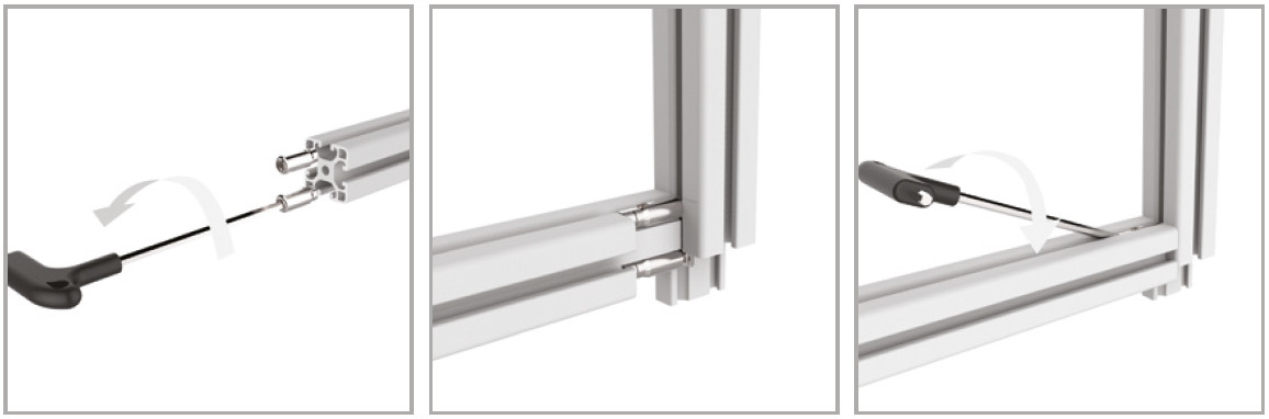 Elemento di collegamento tra profili ortogonali co doppia vite di tiraggio per applicazioni in cui è richiesta maggiore tenuta.