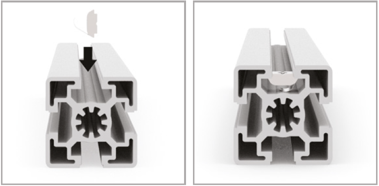 Le dimensioni del dado a culla permettono l’inserimento in qualunque punto della cava, anche in sistemi assemblati.