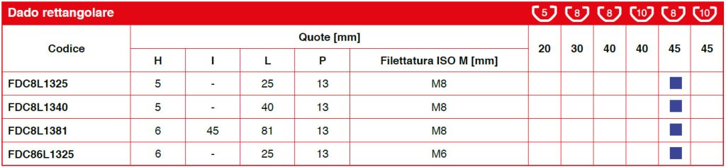 Il dado rettangolare è dimensionato in modo da essere posizionato in qualsiasi punto sulla faccia del profilo, e non necessariamente infilato dal fondo della cava.