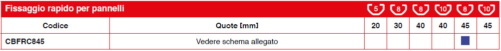 Blocchetto di fissaggio per pannelli con aggancio rapido in cava