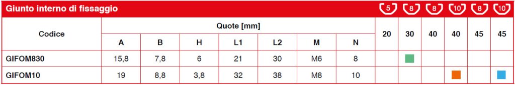 | Serie | Serie 30 cava 8, Serie 40 cava 10, Serie 45 cava 10 |