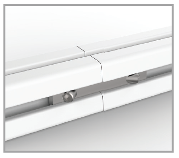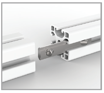 Giunto lineare in acciaio zincato per la realizzazione di collegamenti di testa tra profili senza necessità di lavorazioni meccaniche.