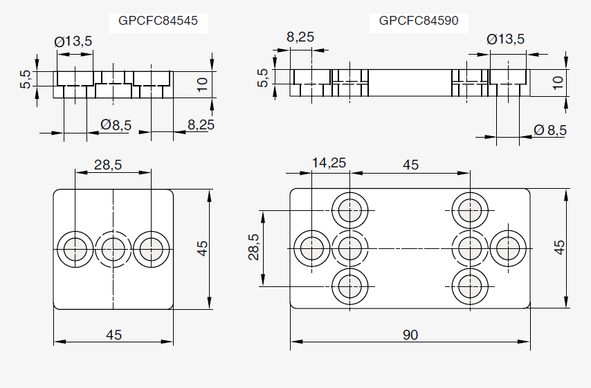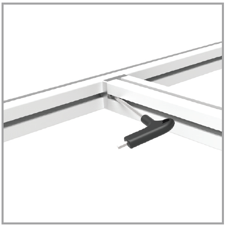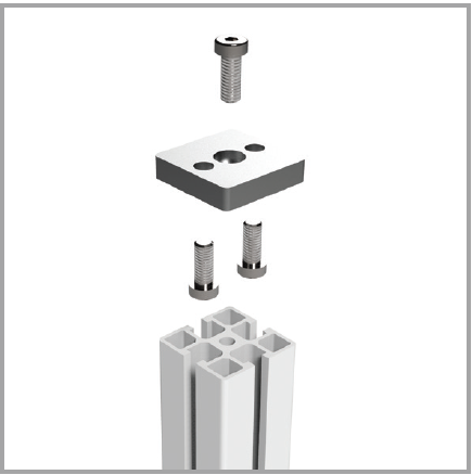 Piastra di collegamento in alluminio sabbiato per l’unione di più profili ortogonali.