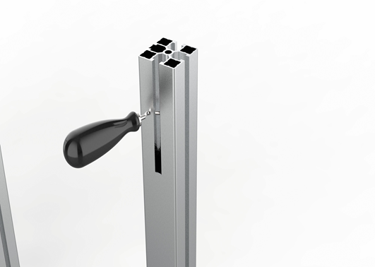 Successivamente bisogna far scorrere la testa della vite nella cava del profilo dove è stato realizzato il foro per il passaggio della chiave e serrare la vite.