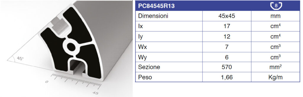 Per la serie 45 cava 8, una prima modalità di giunzione tra profili si realizza maschiando il foro centrale della sezione e avvitandoci una vite a testa cilindrica.
