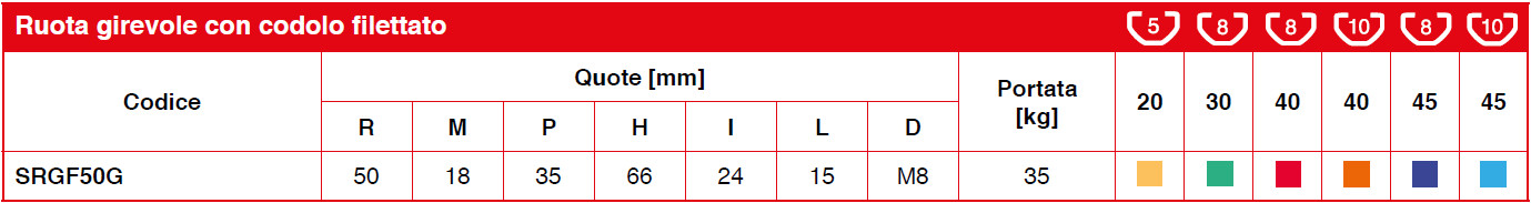 | Materiale | Gomma grigia su nucleo in Nylon e supporto zincato |