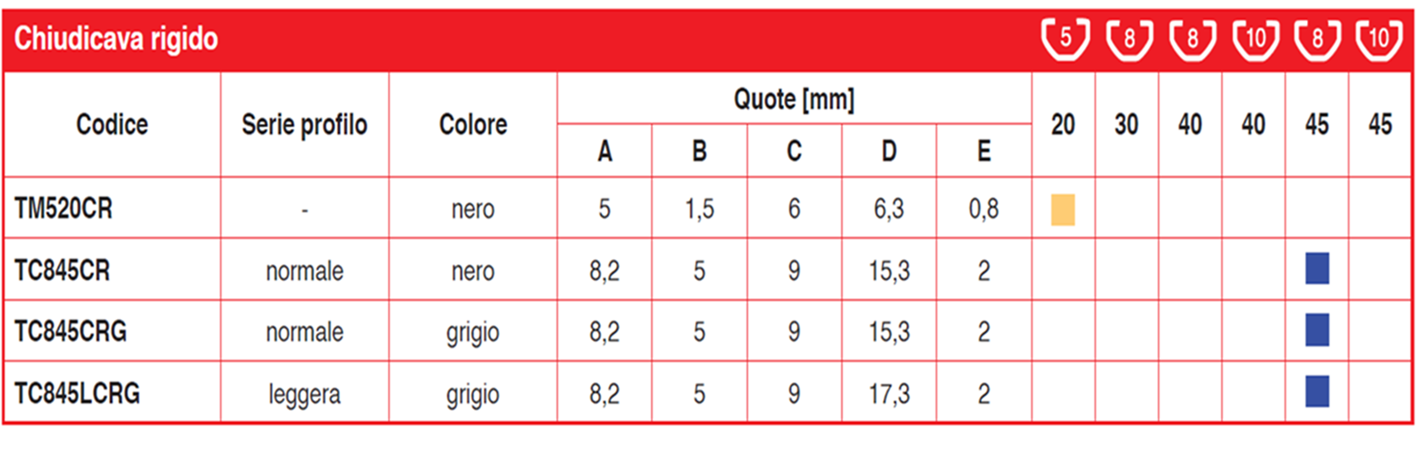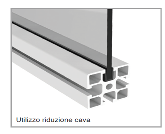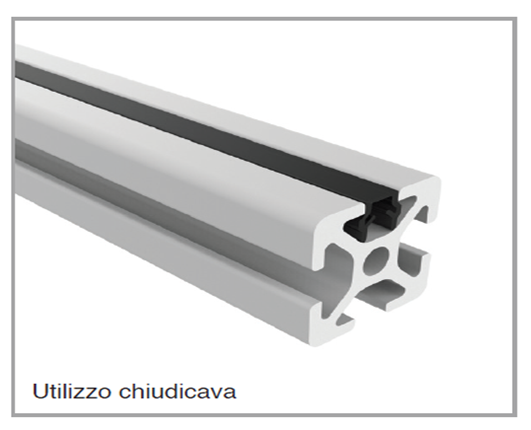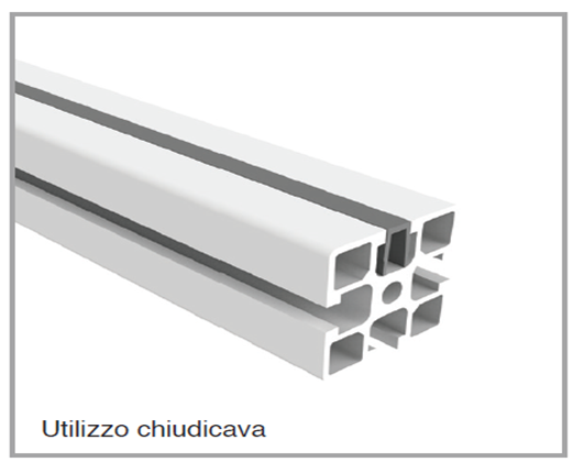 Profilo rigido per applicazione in cava con possibilità di montaggio a scopo riduzione cave per applicazione pannelli, oppure, invertendo il senso di inserimento, come chiudicava.