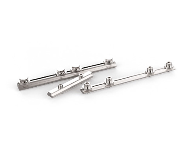 Giunto lineare in acciaio zincato per la realizzazione di collegamenti di testa tra profili senza necessità di lavorazioni meccaniche.