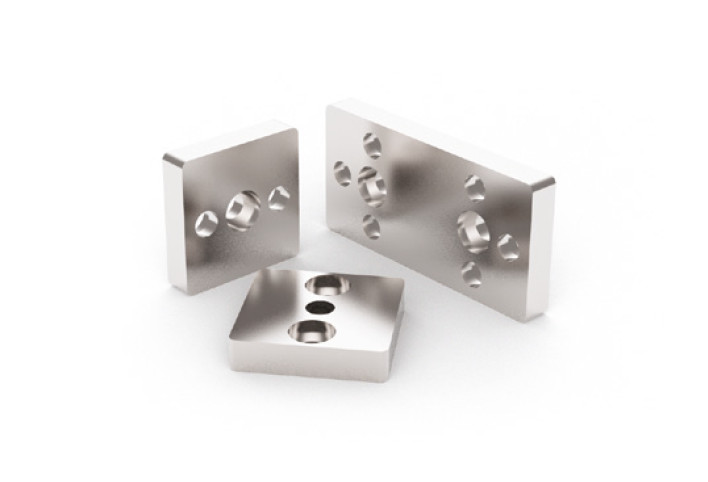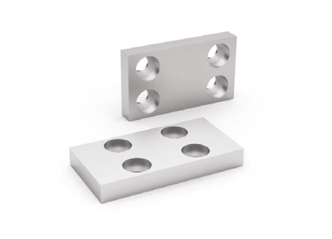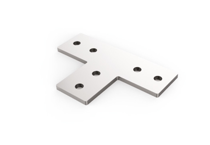 Piastra di collegamento in alluminio sabbiato per l’unione di più profili ortogonali.