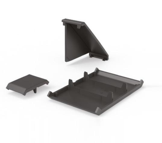 In abbinamento ai giunti angolari con anti-rotazione, sono disponibili tappi per la chiusura del lato aperto. Opportuni riscontri ne agevolano il montaggio